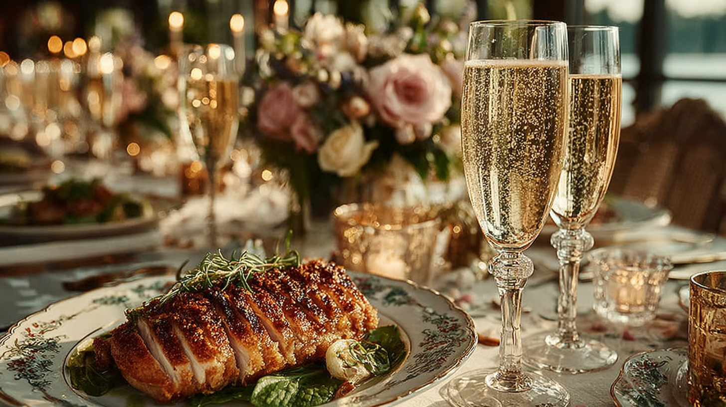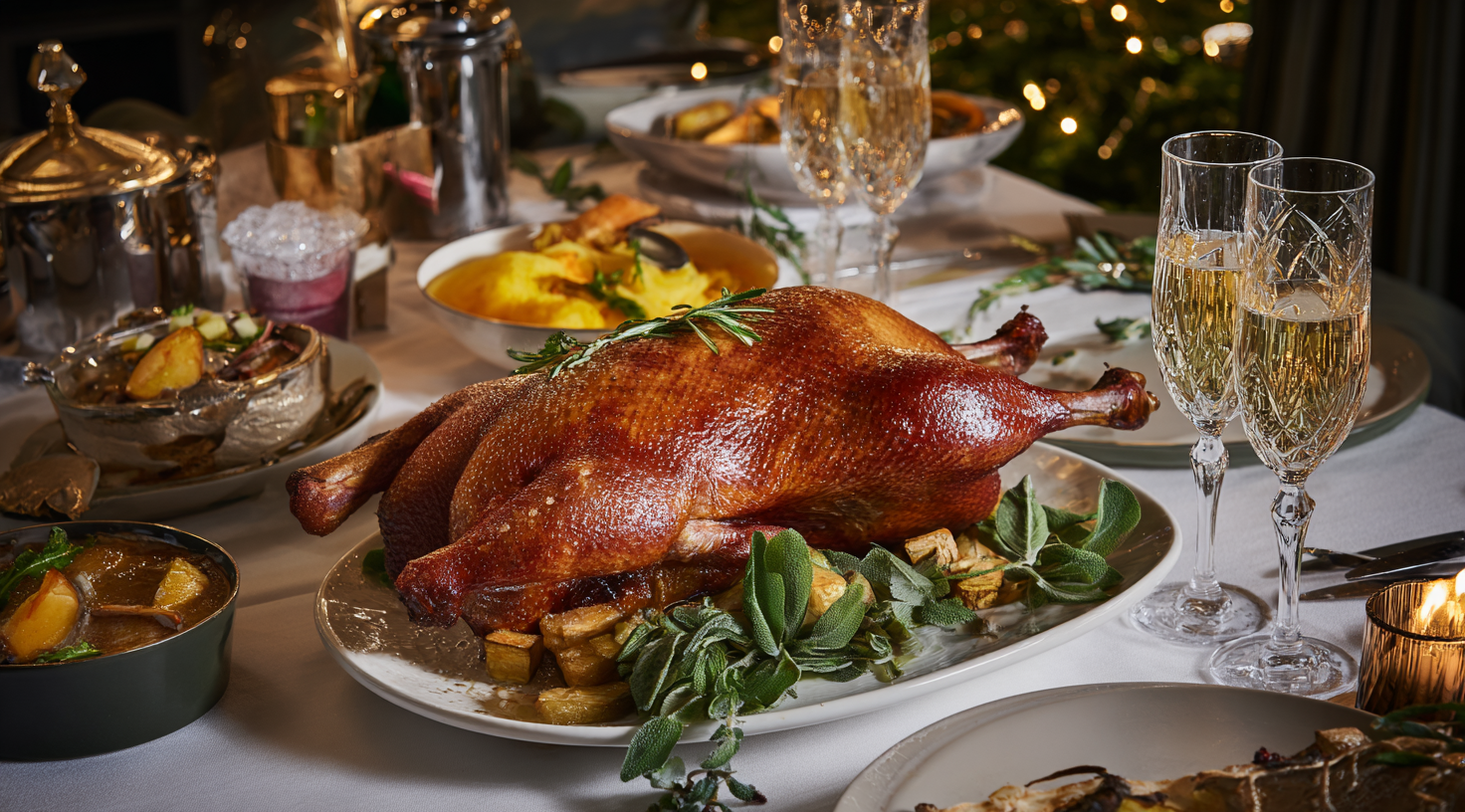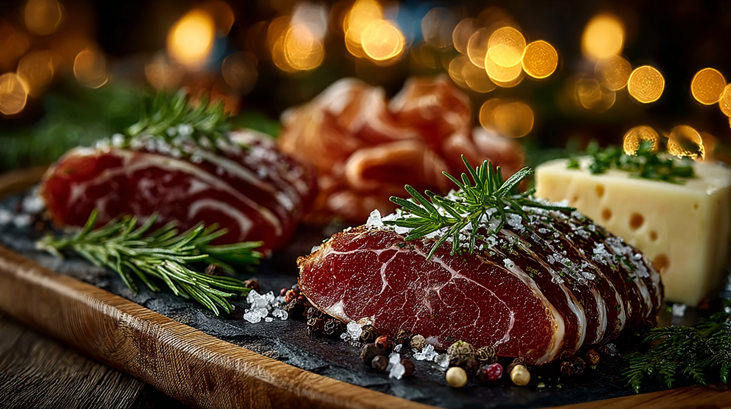 Я добавил в ролик несколько слайдов, созданных ИИ: праздничные сервировки, новогоднее настроение, красиво поданные блюда.
