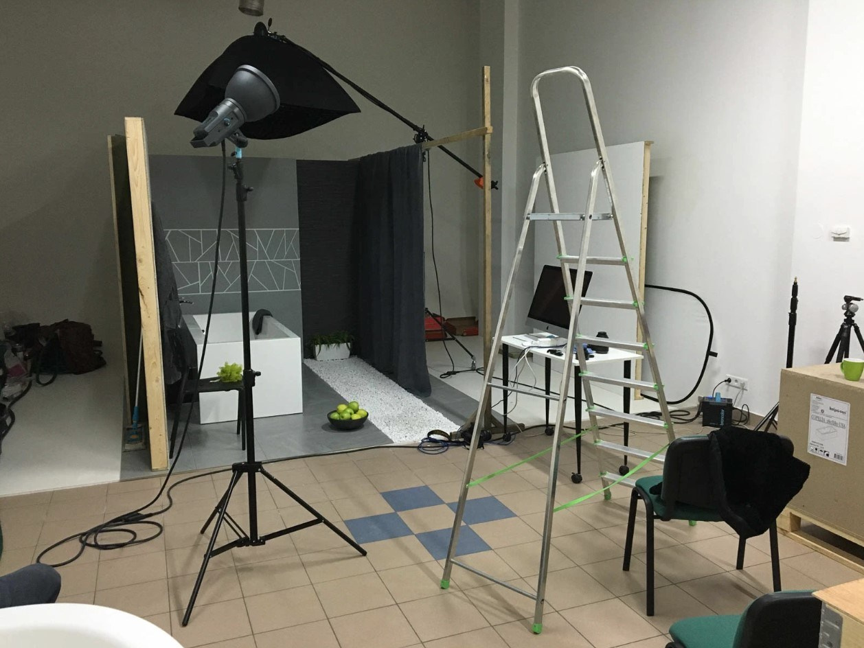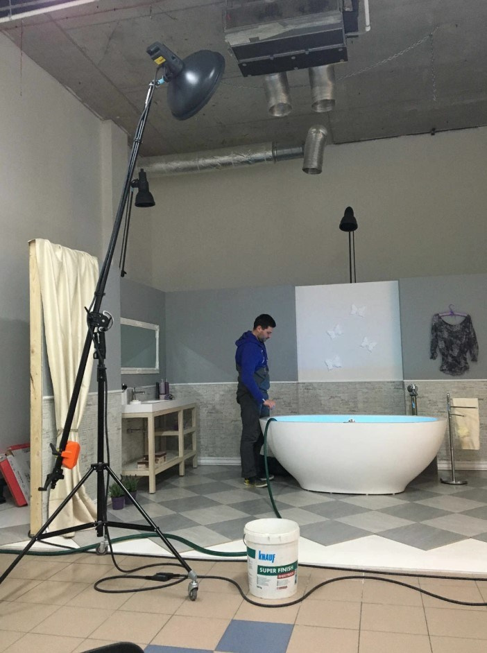 В бэкстейдж-галерее — живые моменты со съёмок сантехники: производство, студия, выездные локации, работа с моделями и сборка интерьерных зон под премиальную продукцию.